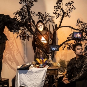 Dans la famille Moute, il y a le père, patriarche à l’ancienne, la mère, chanteuse de nature gaie, et le fils, sorte de sage sans âge. Un trio forcément explosif, d’autant que l’acacia qui s’est enraciné chez eux n’arrange guère la situation. Entre rejet et acceptation de cet autre, rien ne va plus ! Père et fils aux antipodes, la mère navigue en chanson entre les deux. Comment continuer à vivre ensemble demain ? Après ses adaptations de Carmen et Don Quichotte, Jeanne Desoubeaux imagine une fable musicale pour tous les âges, entre effets burlesques et costumes renaissance, acrobaties de situation et sujets d’actualité. Un dîner de famille comme un autre, enfin... presque !