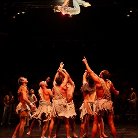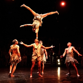 Mais quel cirque ! De la maîtrise du feu au premier pas sur la Lune, les dix circassiens et les trois musiciens d’Akoreacro vous entraînent dans la folle histoire de notre espèce. Tout comme l’humanité au long des âges, ils repoussent continuellement les limites à travers des prouesses toujours plus délirantes !