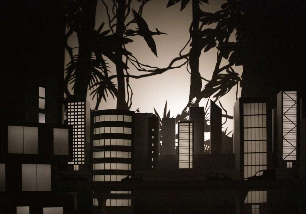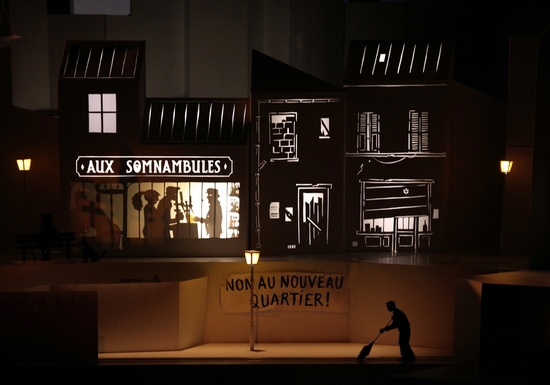 Un vieux quartier charmant, avec son bistrot, ses mamies et ses enfants, est transformé en ville ordonnée où la fonctionnalité supplante l’humanité. Tout devient anonyme, des bureaux à la salle de gym. Mais chaque nuit, les rêves des habitants prennent le pouvoir sur la ville nouvelle. L’un repousse les murs de son appartement, l’autre fait pousser une jungle luxuriante. Dans une spectaculaire ville-maquette en 3D, manipulation d’objets, jeux d’ombres et de lumières donnent vie à ce conte moderne sans paroles, accompagné en direct par des musiques originales et des bruitages artisanaux. Ce moment magique à partager en famille est une invitation à imaginer sa ville.